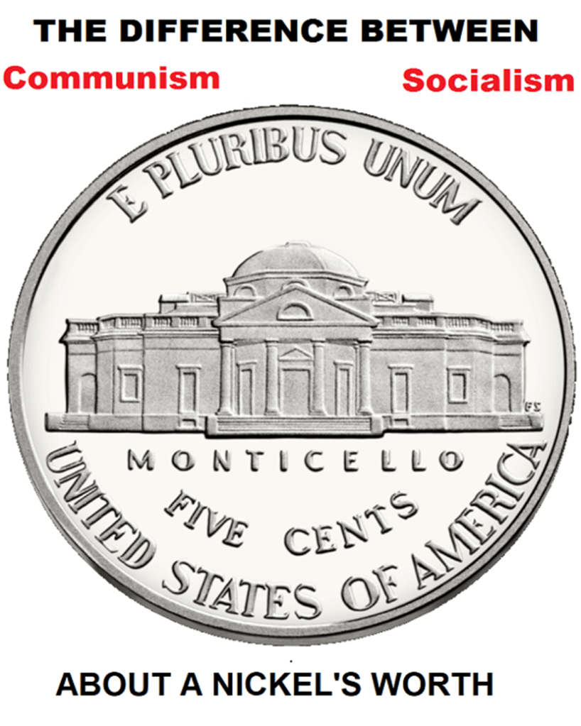 Socialism is Communism for slow learners! Both systems maintain control byforce of arms, have “elections” in which 98%of the votes are always for the continuing that form of governance (and the other 2% mysteriously “disappear”), provide life-saving medical care for their elites, and life-ending medical care for the worker bees.